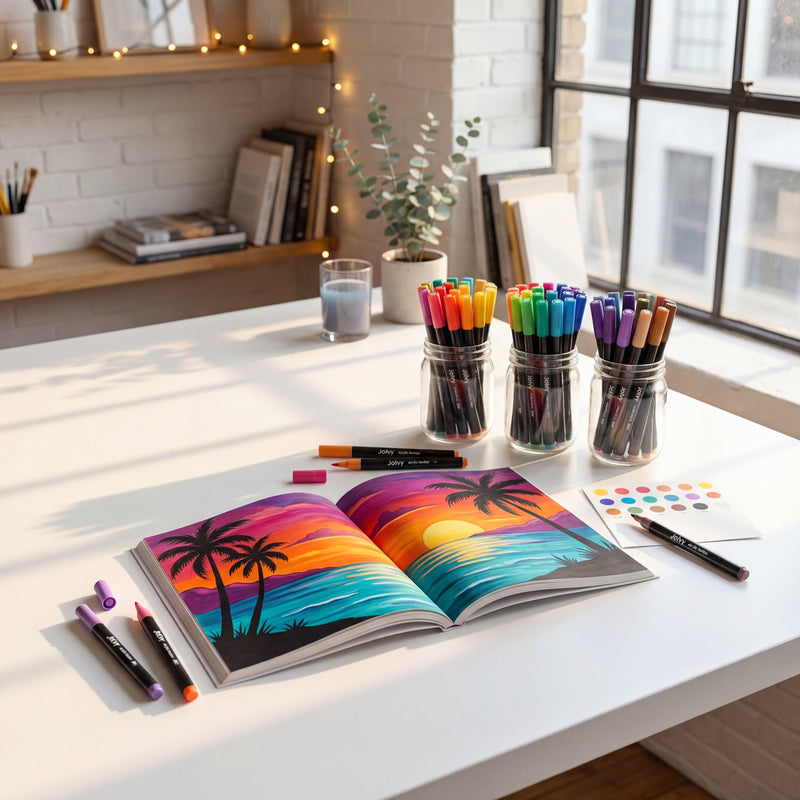 Acrylic coloring markers that never bleed through, cover like real paint, and dry flawless in seconds.